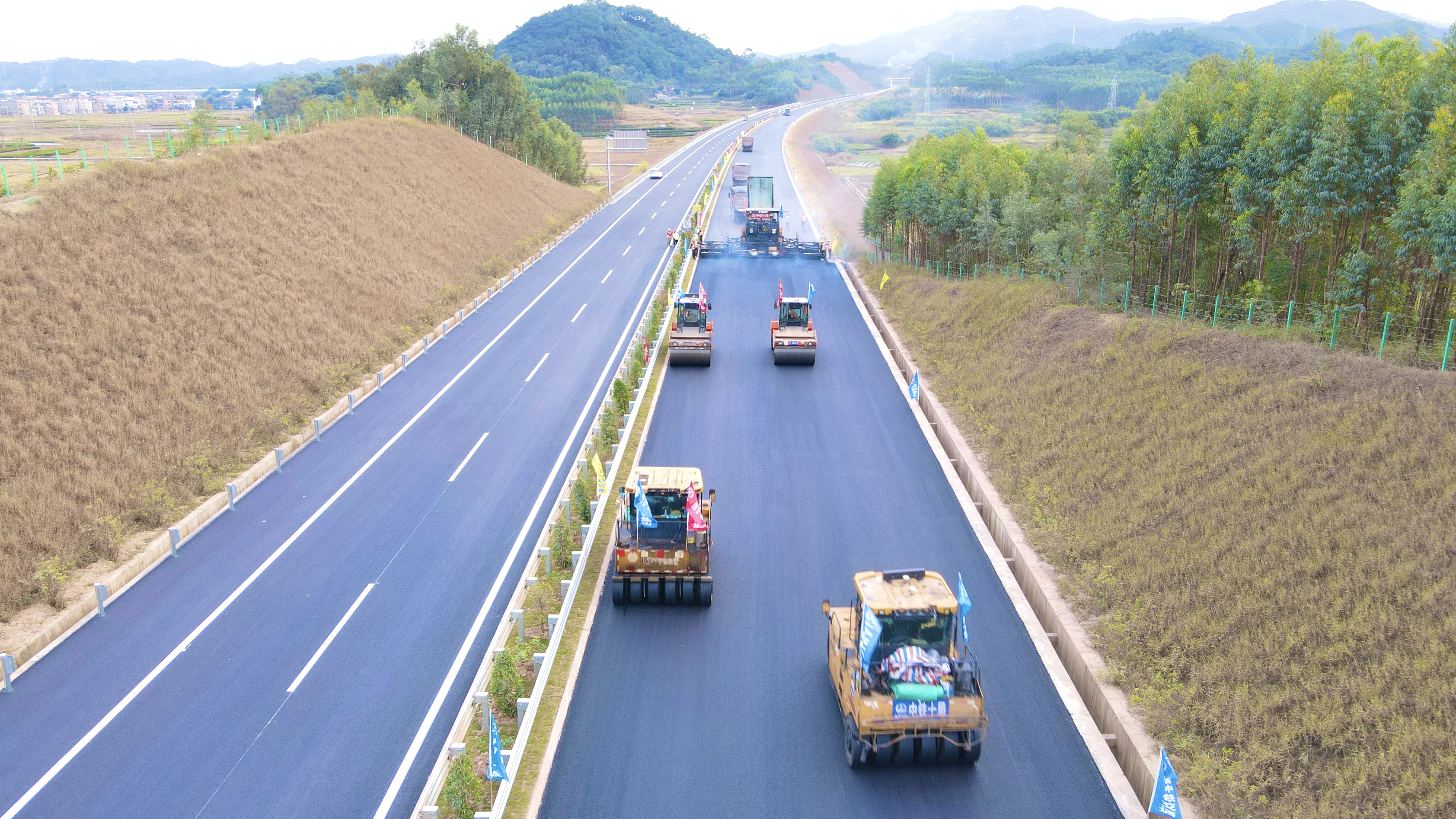 上林至橫縣公路一期工程全線瀝青路面攤鋪圓滿完成